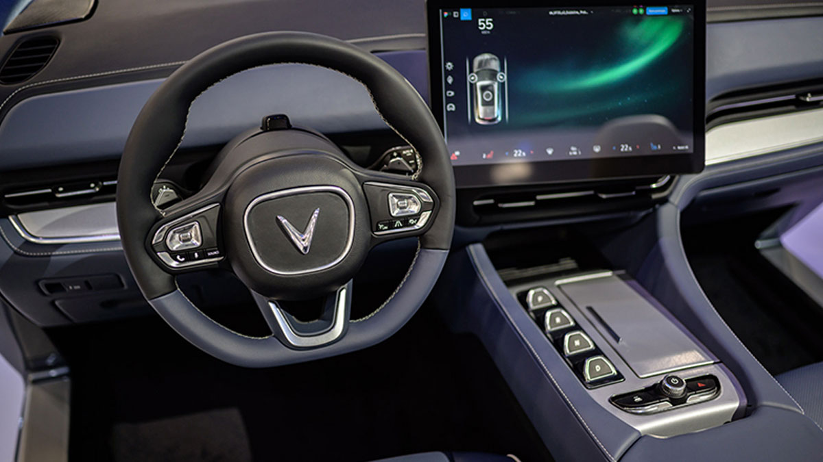 VinFast VF 9 được trang bị màn hình cảm ứng lớn 15,6 inch ở bảng điều khiển trung tâm, giúp giảm thiểu số lượng nút bấm vật lý, đồng thời đơn giản hóa giao diện. Với sự hỗ trợ trực quan của màn hình độ phân giải cao, người lái và hành khách phía trước có thể dễ dàng điều hướng và tận hưởng cảm giác lái toàn diện trên mọi hành trình.